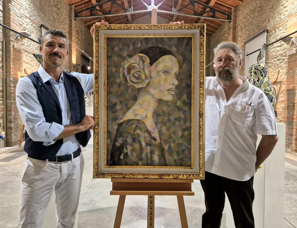 La cerimonia di donazione, alla presenza del sindaco di Loro Ciuffenna Andrea Rossi e dell’assessore alla cultura Alberto Checchi, si è svolta martedì 10 settembre 2024, nel corso del finissage di “Oltre l’apparenza”, personale di pittura, scultura e ceramica di Marco Cipolli a cura di Marco Botti. La mostra, realizzata in collaborazione con Donatella Mormile, era allestita nella Filanda, affascinante spazio espositivo comunale situato nel centro storico, a picco sul torrente Ciuffenna. L’olio su tavola dal titolo “Donna con rosa”, realizzato nel 2019, fa parte del nucleo di opere dell’ultimo lustro in cui la donna è sempre più al centro della ricerca dell’artista nativo di Montevarchi. Nella sua indagine intorno al composito universo femminile, Cipolli trasfigura le protagoniste e le filtra attraverso il sogno, lo stato d’animo del momento, i viaggi della mente e del cuore – osserva Marco Botti nel catalogo che accompagna la mostra lorese. – In questa maniera le barriere spazio-temporali vengono abbattute e la celebrazione della bellezza muliebre non riguarda più solo la superficie, ma anche – e forse soprattutto – il lato interiore che si propaga all’esterno. Il limite tra reale e ideale si fa sottile, perché sono donne di questo mondo, ma si fanno messaggere di un fascino sublimato”.