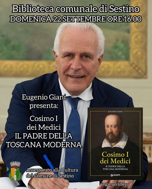 Domenica 22 settembre, alle ore 16, nella biblioteca comunale di Sestino la presentazione del libro di Eugenio Giani dal titolo “Cosimo I dei Medici – il Padre della Toscana” In apertura i saluti del sindaco Franco Dori. Un libro interessante e al tempo stesso certifica anche il rapporto e l’attenzione del Governatore Giani nei confronti di tutto il territorio della Toscana. Una storia di genio e bellezza, ma anche di intrighi e sventure: ingredienti che hanno caratterizzato la vicenda biografica della famiglia dei Medici, signori di Firenze, e l’intero Rinascimento. Cosimo I (Firenze 1519-1574), primo granduca di Toscana e artefice della sua trasformazione in Stato. Giani, in questo libro, ripercorre la vita e l’impresa dei Medici