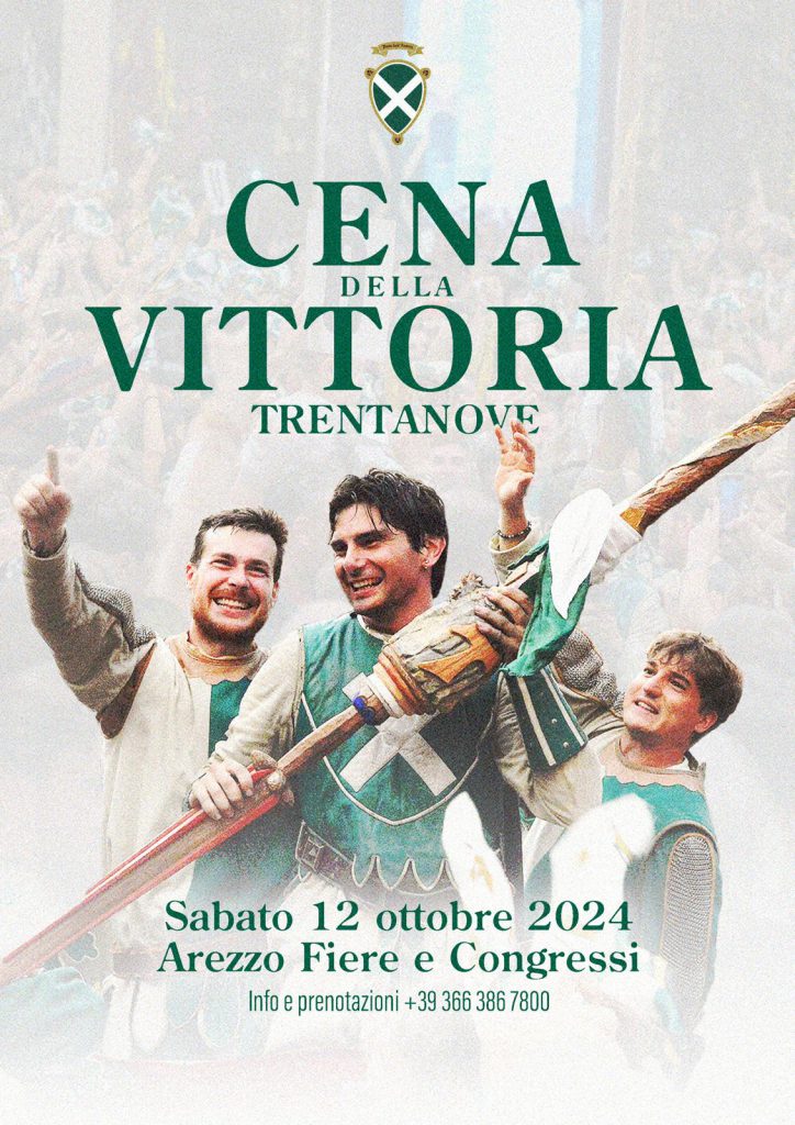 Le prenotazioni possono essere effettuate anche via WhatsApp al numero +39 366 3867800. Il costo per la partecipazione alla cena è di € 45 per i soci e € 55 per i non soci, mentre per i bambini il prezzo è di € 25 (sarà allestito un tavolo a parte con menù a base di pici al sugo, cotoletta con patate arrosto). Il menù della cena, a cura di Fracassi Walter, prevede aperitivo di benvenuto con grande antipasto a buffet, poi i primi: risotto allo zafferano con salsiccia e funghi e pici al ragù toscano; per secondo manzo agli odori e sformatino di patate, insieme ad acqua e vino. A conclusione, l’attesissima “torta della vittoria”. La scaletta della serata prevede la proiezione del video celebrativo della vittoria, il discorso del rettore Maurizio Carboni, la premiazione dei giostratori vittoriosi, la nuova lotteria a premi, l’asta delle lance da Giostra, dei ferri dei cavalli e la bottiglia numero 39 del “Vino della Vittoria”. Dopo il taglio del dolce, la serata continuerà fino a tarda notte con il dj set a cura di Euphoria. A tutti i commensali verrà consegnato un gadget in regalo. Si ringrazia per il sostegno Studio Gori & Carboni, Lasi, Chimet, Galvar, Grafiche Badiali, Arezzo Sped, Jolly Bijox, Pasticceria Cini, Agostini B.