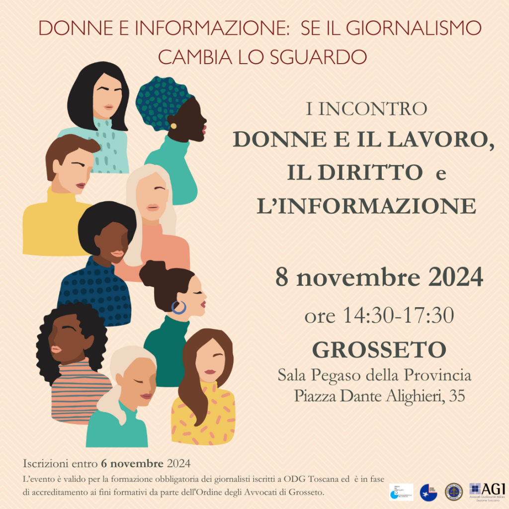 La Fondazione Giornalisti della Toscana lancia un ciclo di incontri dal titolo “Donne e informazione: se il giornalismo cambia lo sguardo” con crediti formativi per giornalisti, dedicati a esplorare l’approccio di genere nel giornalismo e nella comunicazione. L’iniziativa nasce dalla riflessione su come le donne siano rappresentate nelle notizie e su quanto l’informazione consideri le specificità di genere nell’affrontare i diversi temi.“Viviamo in un momento storico in cui è cruciale che l’informazione rifletta la complessità della società contemporanea, e ciò include l’importanza della prospettiva di genere nel giornalismo. Il ciclo di incontri ‘Donne e Informazione’ rappresenta per noi una tappa fondamentale per promuovere un cambiamento culturale nella narrazione giornalistica – ha dichiarato il presidente della Fondazione dei giornalisti della toscana e dell’Ordine, Giampaolo Marchini.“Vogliamo sensibilizzare i professionisti dell’informazione sull’importanza di adottare uno sguardo inclusivo, che superi le rappresentazioni stereotipate e offra una visione autentica e multidimensionale dei fatti. La Fondazione si impegna, attraverso questi corsi, a garantire strumenti di formazione per i giornalisti sia nel campo del diritto sia fornendo strumenti linguistici e culturali da utilizzare nella professione. Sono convinto che questo ciclo di incontri segnerà un passo importante verso un giornalismo sempre più attento, equo e inclusivo.”“Abbiamo dato vita ad un format – sottolinea Silvia Motroni, segretaria della Fondazione Giornalisti – che si propone, appunto, di cambiare lo sguardo di chi fa informazione, per far emergere nel racconto della cronaca la complessità e le sfaccettature di una società che non può essere sempre e solo declinata al maschile”. L’obiettivo è quello di approfondire una serie di temi per capire l’impatto di uno stesso argomento se si prova a partire da un punto di vista di genere. Un ciclo che rimane aperto e sarà via via arricchito da temi generali e spunti proposti dall’attualità” .Si inizia l’8 novembre, con il primo incontro a Grosseto. Dalle 14:30 alle 17:30 presso la Sala Pegaso della Provincia (Piazza Dante Alighieri, 35), dedicato a “Donne e lavoro, il diritto e l’informazione”.L’iniziativa, è organizzata in da Fondazione dell’Ordine dei giornalisti della Toscana in collaborazione con AGI Toscana associazione avvocati giuslavoristi, e con il patrocinio della Provincia di Grosseto, Un focus sulle donne e il lavoroIl corso dell’8 novembre dal titolo “Donne e lavoro, il diritto e l’informazione” sarà coordinato da GianPaolo Schembri, consigliere Agi Toscana, e da Luca Mantiglioni, capo servizio de La Nazione a Grosseto. Ad aprire l’incontro saranno Giampaolo Marchini, presidente dell’Ordine e Fondazione dei giornalisti della Toscana, e Alessandro Failla, presidente Agi Toscana associazione avvocati giuslavoristi.Interverranno:Silvia Volpi, vicepresidente della Fondazione Odg Toscana parlerà sul tema maternità e lavoro secondo la narrazione dei mediaLaura Parlanti, consigliera di parità della Provincia di Grosseto e avvocata del Foro di Grosseto che farà il punto sulle progettualità e buone pratiche contro la discriminazione di genere sul lavoroMarco Tufo, avvocato e assegnista di ricerca università di Siena sulla discriminazione diretta e indiretta sul lavoroDaniela Cantisani, socia AGI già legale della Consigliera di Parità della Regione Toscana e avvocata del Foro di Firenze che farà il punto sulle disposizioni di legge in tema di conciliazione tra attività lavorativa e vita privata Si può iscriversi al corso fino al 6 novembre su www.formazionegiornalisti.it CLICCA QUISecondo incontro del ciclo si terrà: 15 novembre, a Livorno dalle 16.00 alle 19.00 al Centro Donna Comune di Livorno, Largo Strozzi. Il tema sarà “La violenza sulle donne nel linguaggio dei media”. L’evento è organizzato dall’Ordine dei Giornalisti della Toscana e la Fondazione, in collaborazione con l’Associazione Evelina de Magistris, Associazione Giulia giornaliste, e il Comune di Livorno.Relatrici:Elisabetta Cosci: Giornalista e consigliera dell’Ordine Nazionale dei Giornalisti. Ha promosso l’Articolo 5 bis nel Testo Unico dei doveri del giornalista, dedicato al rispetto delle differenze di genere. Silvia Garambois: Giornalista, ex presidente di GiULiA giornaliste, ha tenuto corsi di formazione per giornalisti sul linguaggio di genere e la narrazione della violenza.Silvia Neonato: Giornalista, già presidente della Società Italiana delle Letterate, con una lunga esperienza in ambito radiofonico e della stampa. Sono in programmazione due ulteriori incontri: Medicina di genere: per riflettere sulle implicazioni di genere nel settore medico e promuovere un’informazione attenta e inclusiva. Donne e sport: per contrastare pregiudizi e stereotipi e favorire una rappresentazione equa delle donne nello sport.