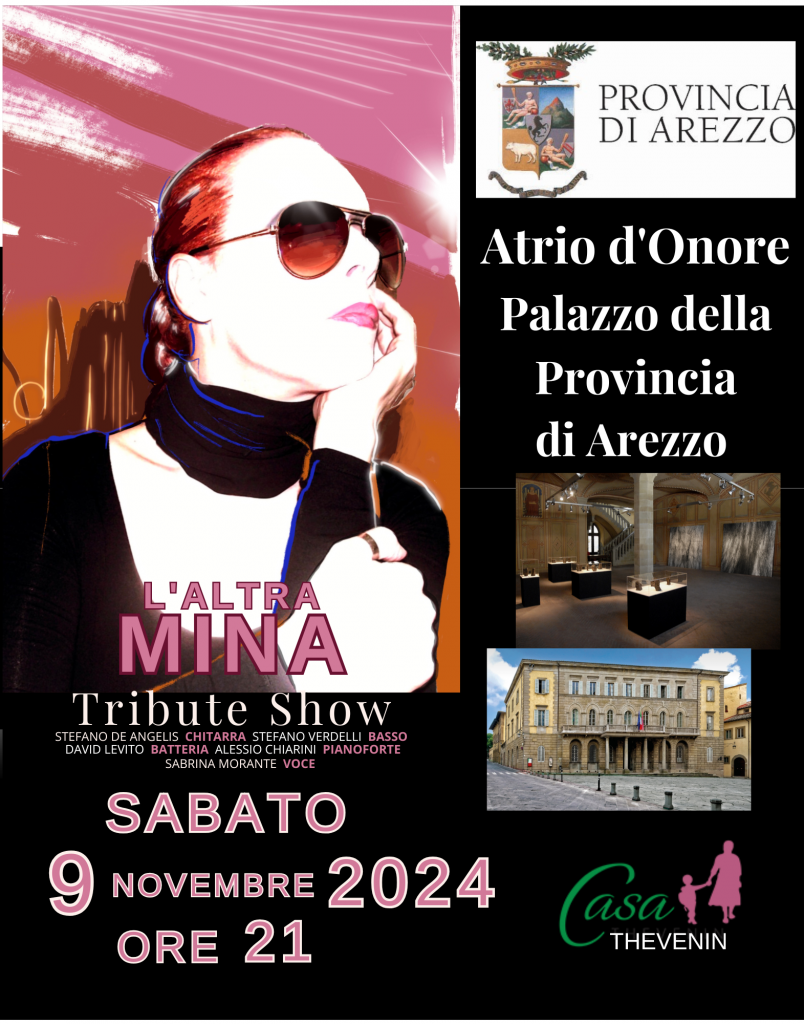 Sabato 9 novembre alle ore 21.00 nell’Atrio d’Onore del Palazzo della Provincia di Arezzo si terrà “L’altra Mina – Tributo Show dedicato all’icona della musica Mina Mazzini”. Un omaggio alla più grande voce della musica italiana, interpretata da Sabrina Morante