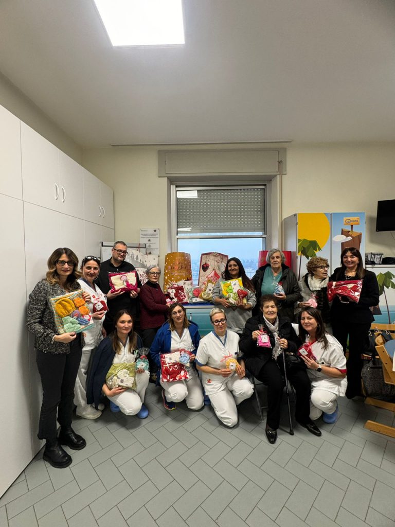 hanno voluto rendere omaggio ai nuovi nati presso i reparti di Ostetricia e Terapia intensiva Neonatale dell’ospedale M. Bufalini, donando un cospicuo quantitativo di kit colorati realizzati a mano. Le amiche di Uncinetto e caffè, si ritrovano creando anche un’occasione di socializzazione, per realizzare volontariamente e gratuitamente, attraverso un lavoro artigianale, minuscoli completini, scarpine, berrettini e scaldacuori, con materie prime di alta qualità, che vengono poi donati ad ogni neonato, per infondere alle famiglie quel calore e senso di accoglienza di cui hanno bisogno in un momento particolare e unico della vita. In questa occasione speciale, alla donazione si sono uniti mamma e papà di Daniele, un giovane paziente seguito dall’equipe del dott. Marcello Stella, recentemente scomparso, che la famiglia insieme alle magline, ha voluto ricordare con un contributo per l’acquisto di nuovi gomitoli di lana a sostegno del progetto e a beneficio futuro di altri piccoli nati. La consegna è avvenuta direttamente nelle mani degli operatori del reparto, che con amore e dedizione si prendono cura quotidianamente dei piccoli ricoverati all’interno della Terapia Intensiva Neonatale. Alle amiche di Uncinetto e caffè e alla famiglia di Daniele, un grazie di cuore da parte dell’Azienda della Romagna per il sostegno costante al reparto e al percorso di umanizzazione delle cure.