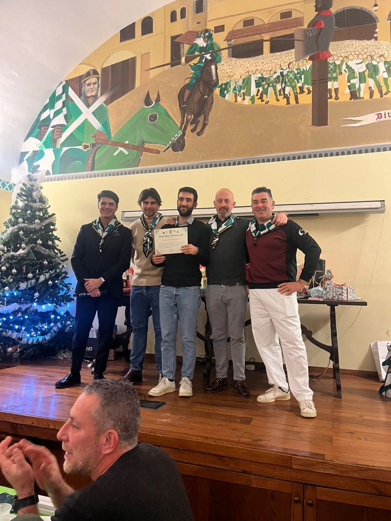 AREZZO – Consegnato al quartierista classe ’95 il prestigioso riconoscimento insieme alle pergamene per i quartieristi che hanno indossato il costume bianco verde per la prima volta. Sabato 14 dicembre a Porta Sant’Andrea si è svolta la tradizionale “Cena dei Figuranti” e degli auguri, appuntamento rivolto ai quartieristi che hanno indossato il costume in piazza Grande e contribuito alla causa sociale del quartiere