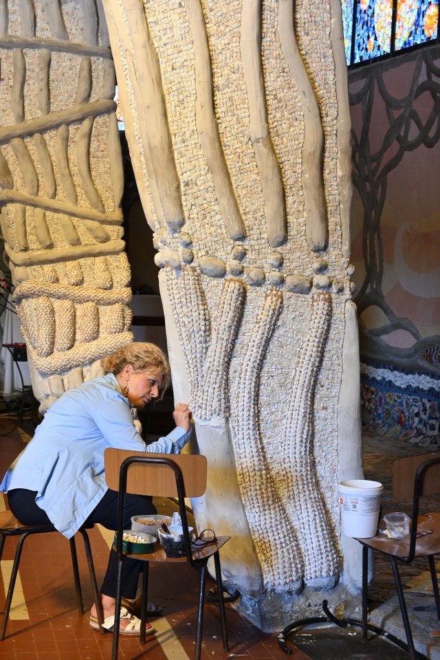 Attraverso la tecnica musiva del trencadìs, l’artista Andreina Giorgia Carpenito ha cominciato a realizzare un gigantesco tappeto musivo nel 2009, descrivendo la “Visione del profeta Ezechiele” ripresa dal Vecchio Testamento, da lei reinterpretata per rappresentare la divisione tra il bene e il male attraverso una visione favolistica. Inizialmente le tessere del mosaico erano realizzate con materiali di risulta e mattonelle recuperate dagli abitanti di Indicatore o con scarti e partite rovinate donate da alcune ditte edili. Man mano che il progetto si faceva conoscere, da tutto il mondo cominciarono ad arrivare anche materiali di migliore qualità e manodopera. A oggi centinaia di artisti e più di mille volontari hanno già aiutato o stanno aiutando l’artista nel suo progetto internazionale di arte pubblica e condivisa. L’associazione culturale Ezechiele, presieduta dalla Carpenito, nei locali riqualificati della parrocchia di Indicatore gestisce la realizzazione del mosaico e l’accoglienza di artisti da tutto il mondo. Accanto all’opera vengono portati avanti i progetti sociali, i corsi d’arte e musica, i laboratori multidisciplinari che coinvolgono bambini, disabili, ex tossicodipendenti, malati psichiatrici, detenuti in affidamento dal carcere. Persone diverse per etnia, religione, età e storie di vita si incontrano ogni giorno con la voglia di condividere un obiettivo comune, confrontarsi per crescere ed esprimere le proprie capacità e conoscenze, tutti assieme per alimentare quel grande sogno a occhi aperti che è il Mosaico di Andreina.