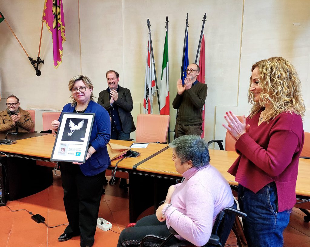 Promotore il centro di aggregazione sociale per disabili Helios, insieme all’associazione Imago partecipe fin dalla prima edizione accolta nei suoi locali grazie al presidente Antonio Losco, a Cisl che ha fornito le macchine fotografiche, a Coldiretti e al suo mercato Campagna Amica. Con la collaborazione della presidenza del Consiglio Comunale e della fondazione Arezzo Comunità. Sessantaquattro scatti attraverso i quali ha preso forma e anima un progetto terapeutico destinato agli ospiti del centro diurno, nella duplice veste di fotografi e soggetti immortalati. Il vicesindaco e presidente della fondazione Lucia Tanti: “intanto ringrazio tutti i protagonisti e gli artisti coinvolti. Ci siamo confrontati su dove ospitare la mostra e abbiamo convenuto che il luogo più giusto non poteva che essere la casa degli aretini e dell’intera comunità. Queste settimane, con le foto esposte, oltre a diventare una cerniera tra quanto realizzato e le iniziative che verranno, ci hanno parlato ricordando che nessuno è privo di talenti e che tutti devono avere l’occasione di esprimerli”. È stata inoltre consegnata al vicesindaco come dono una foto scattata da uno dei ragazzi con la frase: “A volte vorrei avere delle ali per volare ed essere libera di muovermi. Poi però penso che la libertà è nella mia testa e con quella posso fare tutto, non cammino con i piedi ma posso farlo con i pensieri”. Accanto a Lucia Tanti, Angelo Bertoglio della cooperativa Nuovi Orizzonti, Daniele Vigni di Coldiretti e Lucia Caneschi, coordinatrice del centro Helios e curatrice dell’iniziativa: “quando le parole mancano o non sono sufficienti, si rendono necessari altri strumenti di comunicazione. La forza di un’immagine permette di rievocare efficacemente il vissuto personale, i propri pensieri ed emozioni. Ogni partecipante ha scelto un tema specifico e, oltre ad apprendere le tecniche fotografiche, ha intrapreso un percorso introspettivo che gli ha permesso di migliorare il suo modo di stare nel mondo”.
