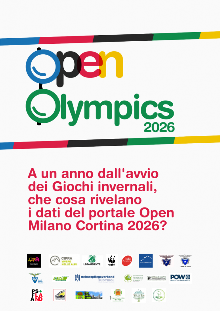 Quando abbiamo cominciato a monitorare le opere per i XXV Giochi invernali non avevamo accesso a dati aggiornati e completi.  Oggi, anche in risposta al nostro appello fatto nella primavera del 2024, queste informazioni sono online, accessibili a tutte e tutti, in forme semplificate. Chiunque può accedere al portale “Open Milano Cortina 2026”, scaricare e commentare tali dati. È un importante risultato per la società civile, alla luce dello sforzo sostenuto da Simico S.p.A. che cura la piattaforma.”, commentano le associazioni. Attraverso l’analisi dei dati, la rete Open Olympics 2026 rinnova quattro “domande civiche”: il conteggio effettivo dei progetti (dal portale di Simico mancano 6 delle 100 opere previste dal Piano, oltre a quelle escluse dal DPCM ma comunque legate ai Giochi); la trasparenza sulle fonti di finanziamento e sulle spese effettivamente sostenute (dettagli ancora assenti nel portale); i dati sull’impronta CO2 per valutare efficacemente l’impatto ambientale delle opere (su cui c’è disponibilità di Simico S.p.A.); chiarimenti su come si eviterà di scaricare i costi su ambiente, lavoro e controlli, considerati i tempi ristretti. Con il Report la rete Open Olympics 2026 accende i riflettori sull’imminente fase di organizzazione e realizzazione dei XXV Giochi. In questo contesto, la Fondazione Milano Cortina 2026, ente responsabile, dovrà reperire oltre 1,6 miliardi di euro. Allo stato attuale, preoccupa però il deficit patrimoniale di circa 108 milioni di euro (bilancio 2023), con il rischio che eventuali perdite ricadano su Stato ed enti territoriali, come del resto previsto dagli attuali accordi. Crediamo che la sola ipotesi di un onere a carico del pubblico basti di per sé a spronare la Fondazione a garantire un “di più di trasparenza”, riportando un dettaglio di come sia utilizzata ogni singola risorsa, secondo quali criteri si sta decidendo di spendere all’interno di Fondazione, come sta avanzando il reperimento risorse. Pertanto, sollecitiamo anche Fondazione a prevedere una restituzione ampia di dati aperti e, se possibile, un portale pubblico che favorisca chiarezza e controllo civico, sul modello di Simico S.p.A.  “Il nostro obiettivo – concludono le associazioni della Rete – resta uno soltanto: fare delle XXV Olimpiadi e Paralimpiadi italiane del 2026 un esempio di trasparenza e un’autentica festa dello sport, per tutte e tutti”.