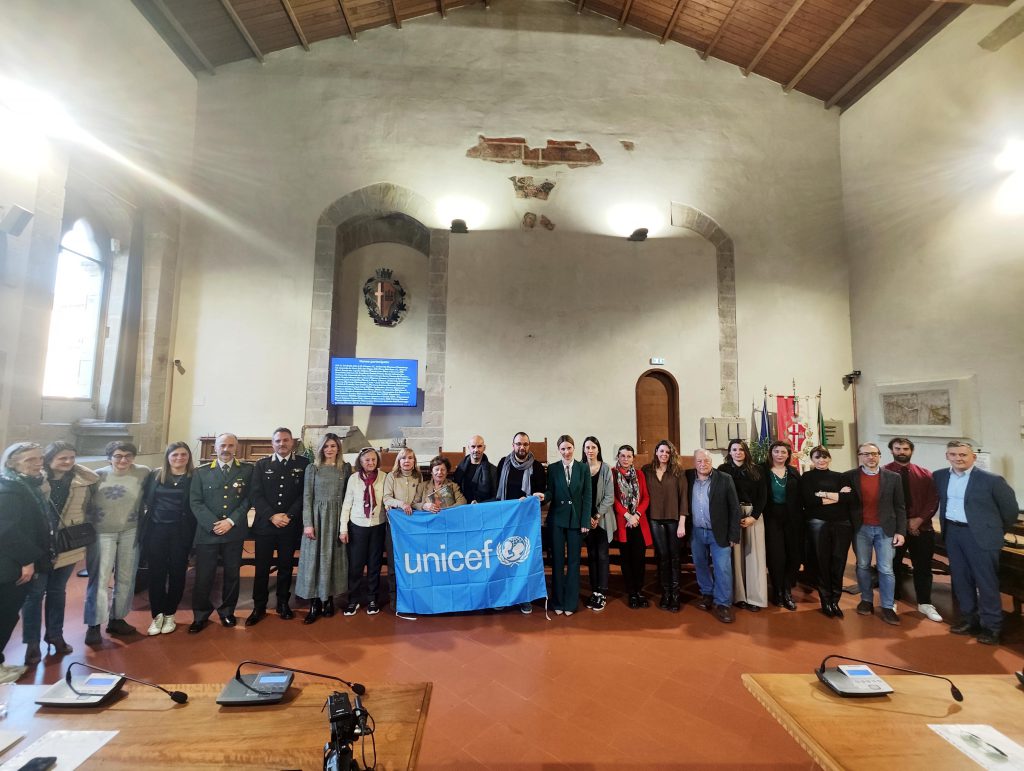 Un impegno che emerge ogni giorno attraverso le istituzioni pubbliche, il mondo della scuola, il volontariato, l’attività dell’associazionismo, delle forze dell’ordine e che una volta all’anno, in occasione della mobilitazione di vallata che nel 2023 e nel 2024 è stata promossa dal Comitato Umbria dell’Unicef con la manifestazione “Una luce sui diritti”, viene portato all’attenzione generale con iniziative che si propongono di coinvolgere e sensibilizzare la comunità del comprensorio. “In questo territorio ho trovato scuole nuove, con ambienti educativi moderni, ma anche esperienze all’avanguardia, difficili da trovare altrove, che sono merito di un sistema nel quale istituzioni pubbliche e istituzioni scolastiche sanno fare rete tra loro e sanno fare rete con le proprie comunità”, ha dichiarato Pace nella sala del consiglio comunale di Città di Castello. La presidente nazionale di Unicef è intervenuta con la presidente del Comitato Umbria Iva Catarinelli (che ha portato il saluto del presidente provinciale Fausto Santeusanio)e la responsabile dell’Altotevere Angela Monaldi all’incontro organizzato con il sindaco Luca Secondi,gli assessori ai Servizi Educativi, Letizia Guerri, alla Cultura, Michela Botteghi, e alle Politiche Sociali, Benedetta Calagreti, gli amministratori delle altre municipalità del comprensorio, i bambini, gli insegnanti, gli educatori, i rappresentanti delle associazioni e delle forze dell’ordine che sono stati protagonisti dell’ultima edizione di “Una luce sui diritti”. Nell’occasione, a testimoniare con la propria presenza l’attenzione e la vicinanza dell’Assemblea Legislativa dell’Umbria è stata la consigliera Letizia Michelini. “Abbiamo visto – ha detto Pace – quanti sforzi vengono fatti per assicurare il diritto allo studio, per migliorare l’apprendimento e la qualità delle relazioni tra i bambini e tra gli adolescenti, per favorire l’inclusione sociale e abbiamo constatato quanti risultati sono stati ottenuti. Ecco perché oggi siamo qui per premiare le amministrazioni comunali e le scuole del territorio con gli attestati di merito per le iniziative che hanno dato concreta attuazione al progetto ‘Scuola amica delle bambine, dei bambini e degli adolescenti’, l’iniziativa che promuoviamo come Unicef in collaborazione con il MIUR per far conoscere la Convenzione sui diritti dell’Infanzia e dell’adolescenza approvata dall’Assemblea Generale delle Nazioni Unite nel 1989”. Oltre che ai Comuni dell’Altotevere, nell’occasione i riconoscimenti sono stati assegnati al Primo Circolo Didattico San Filippo, al Secondo Circolo Didattico Pieve delle Rose e all’Istituto comprensivo Alberto Burri di Trestina. “Una luce sui diritti ci ha resi davvero orgogliosi di essere amministratori di questo territorio, perché abbiamo toccato con mano, una volta di più, l’infaticabile impegno con cui ogni giorno si lavora nelle nostre scuole per l’educazione dei bambini e degli adolescenti, per la promozione dei loro diritti e per la costruzione del loro futuro”, hanno sottolineato il sindaco Secondi e l’assessore Guerri. “Quello che facciamo da amministratori, investendo sull’edilizia scolastica e sui servizi – hanno puntualizzato Secondi e Guerri – è ciò che meritano le straordinarie risorse che emergono dalla nostra comunità. Per noi è un grande privilegio ospitare la presidente di Unicef Carmela Pace e le sue rappresentanti locali, che ringraziamo per aver voluto tributare un riconoscimento così importante alla grande mobilitazione che ormai da due anni attraversa la nostra vallata nel segno della tutela e della promozione dei diritti dei bambini e degli adolescenti. Una mobilitazione – hanno evidenziato sindaco e assessore – che nasce dalla grande consapevolezza di quanto garantire pari opportunità a tutti nell’accesso al diritto allo studio sia ciò che permette di ridurre le disuguaglianze e di costruire nel nostro territorio comunità che non siano sommatorie di singoli individui, ma comunità educanti”. Nel corso dell’incontro è stato proiettato un video che ha ripercorso tutti i momenti vissuti nell’edizione 2024 di “Una luce sui diritti” e le dirigenti scolastiche degli istituti protagonisti hanno testimoniato, insieme alle docenti responsabili del progetto, l’entusiasmo con cui gli studenti hanno partecipato alle iniziative programmate e l’importanza educativa delle esperienze condivise. La manifestazione, promossa dal 20 novembre all’19 dicembre dal Comitato Unicef Umbria negli otto comuni dell’Altotevere (Citerna, Città di Castello, Lisciano Niccone, Monte Santa Maria Tiberina, Montone, Pietralunga, San Giustino e Umbertide), si è articolata su 31 eventi proposti da 16 istituzioni scolastiche, 14 associazioni culturali e sportive, da due tra centri studi e università, cinque centri infanzia, otto centri ricreativi e oratori, dalla Biblioteca comunale Carducci di Città di Castello, da due scuole di musica e una parrocchia.