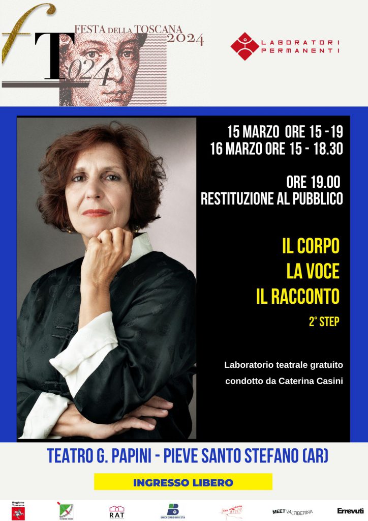 L’ultimo appuntamento della rassegna sarà nei giorni 15 e 16 marzo 2025 IL CORPO LA VOCE IL RACCONTO – 2° step – laboratorio teatrale gratuito condotto da Caterina Casini, secondo appuntamento formativo sul teatro, dedicato ai cittadini di Pieve Santo Stefano e territori limitrofi, per un approfondimento su cosa sia l’espressione teatrale, per creare un pubblico attivo e attento alle proposte culturali che vengono presentate durante l’anno. Attraverso la pratica dell’arte, sperimentando la propria creatività, i partecipanti imparano a mettersi in gioco e fanno esperienza diretta di cosa sia il lavoro di una messa in scena. Un avvicinamento al Teatro coinvolgente e divertente, in cui si lavorerà su canovaccio per provare a montare la scena comica finale del Gianni Schicchi di Puccini. Alla fine del percorso un incontro dimostrativo col pubblico. Il lavoro sarà così strutturato: sabato 15 marzo dalle ore 15.00 alle 19.00, domenica 16 marzo dalle ore 15.00 alle ore 18.30 e alle ore 19.00 avrà luogo la restituzione del lavoro al pubblico. Questo appuntamento rientra nel progetto vincitore del bando Festa della Toscana 2024 dal titolo “Conoscenza e consapevolezza della tradizione – ponte verso l’innovazione” promosso da Laboratori Permanenti e Coro Valtiberino.