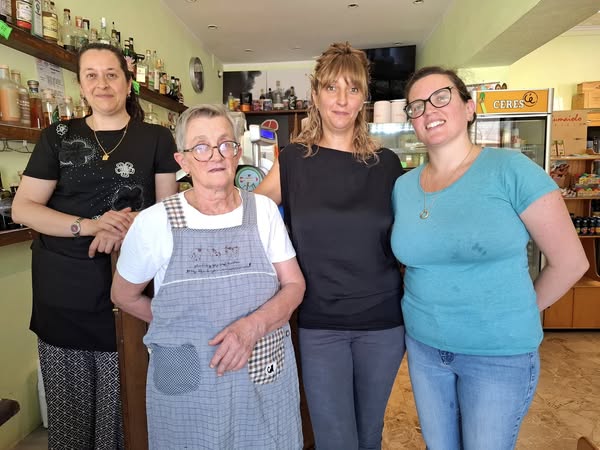 La quale governa i fornelli (grazie ai preziosi insegnamenti di mamma Clara) con l’aiuto di Alessandra Telarucci. Mentre in sala Irene Bergamaschi garantisce il servizio con amorevole cura. Dopodiché alcune piacevoli paste fatte in casa come, ad esempio, le tagliatelle al ragù o i ravioli di erbe o patate con condimento a scelta. Poi, tra l’altro, carni alla griglia o alla pizzaiola. Quindi coniglio arrosto, scaloppine ai funghi e tagliate. Vino della casa, birre alla spina, e nei due (ben visibili) armadi climatizzati sorprendenti etichette. Dallo champagne alla Franciacorta e dal trentino ad altre regioni di sicuro interesse. E al collo di ciascuna bottiglia il cartellino col prezzo. Infine alcuni dessert home made e semifreddi al caramello o agli agrumi di Sicilia. Caffè da torrefazione bolognese e poi vermout e distillati. Ambiente lumonoso e molto semplice, da trattoria, e una trentina di posti a sedere ai tavoli dell’unica stanza. Nella foto, Lia Piccini, Elena Emser Frankje, Alessandra Telarucci e Irene Bergamaschi