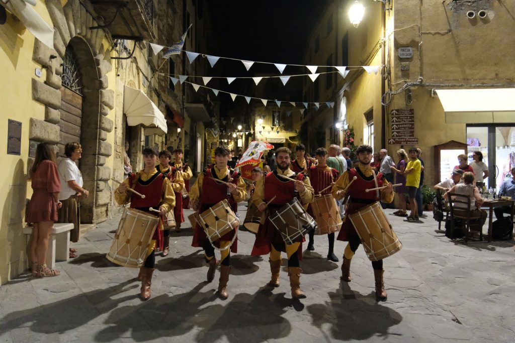 L’aria inizia a farsi tesa per i contradaioli sarteanesi che, dopo la serata di ieri lunedì 11 agosto, hanno fisso il cuore e il pensiero alla giornata di venerdì 15, quando si andrà a disputare la Giostra del Saracino. La suggestiva cerimonia della Tratta dei Bossoli, ha infatti stabilito l’ordine di corsa della Giostra, oltre all’ordine che le contrade dovranno rispettare durante tutto l’anno e fino all’estrazione successiva, in qualsiasi evento, manifestazione e diritto di parola alle riunioni costituite. Durante la serata i contradaioli hanno potuto inoltre assistere all’investitura del proprio giostratore che, a meno di sorprese dell’ultim’ora, dovrebbe essere colui che correrà il 15. Il Capitano del Popolo Giancarlo Betti e il Sindaco Francesco Landi, nell’occasione “Governante di nostra terra”, hanno estratto per prima la contrada di San Bartolomeo e il capitano Massimo Nocchi ha consegnato la lancia a Marco Mazzuoli, che quest’anno dovrebbe disputare la sua quarta Giostra. La cavalla scelta sarà senz’altro l’esperta anglo araba sarda di ventun anni Lezera, che ha corso le ultime tre giostre. Fanno parte della scuderia anche i cavalli Caos Furiano, diciassettenne purosangue arabo orientale e Fiamma, quarter horse di diciassette anni. Il secondo bossolo è stato quello della Santissima Trinità. Il capitano Federico Pizzinelli ha investito Giacomo Perugini, il veterano della piazza che riproverà a conquistare il palio per la Santissima Trinità dopo lo sfortunato spareggio dello scorso anno. Ancora incerta la monta tra Vibranio, anglo arabo di sei anni oppure Badu e Sole, sauro anglo arabo di otto anni. La sorte ha riservato la terza piazza a Sant’Andrea con il capitano Mattia Salvadori che ha poi chiamato in piazza Nicholas Faenzi. Spetterà senz’altro a lui l’arduo compito di riportare a Castiglioncello il palio dopo quindici anni di digiuno. Ha corso tre giostre e si ricorda l’esordio vincente in Provaccia nel 2022. Monterà sicuramente Quarzus, bellissimo e velocissimo anglo arabo di sedici anni. Altri cavalli a disposizione Perre Ascra, stallone anglo arabo di diciassette anni e Kansas giovane incrocio quarter di nove anni. Estratta per quarta San Martino. Il capitano Francesco Ciaccioni ha riconfermato Giordano Falsetti, dopo l’esordio forzato della scorsa Giostra dovuto all’indisponibilità di Tony Bartoli. Il suo destriero è Chasmere della Casina, sella italiano di quattordici anni. Disponibile anche Nanut, esperto e affidabile anglo arabo di sedici anni. Ultima a scendere in piazza sarà la Contrada di San Lorenzo. Il capitano Maurizio Pippi ha consegnato la lancia a Luca Betti, vincitore all’esordio lo scorso anno per la medesima contrada. Scontata la riconferma del classe 2000 che sarà anche quest’anno il più giovane della piazza. Non sarà sicuramente sciolto il binomio con la cavalla Shakira, argentina di dieci anni, con la quale Luca colse lo scorso anno l’accoppiata Provaccia/Giostra. L’altra cavalla a disposizione è Luna, anglo araba di quattordici anni. Oltre all’estrazione, durante la cerimonia, è stato presentato anche il Palio, dipinto da Monica Minucci, pittrice e ideatrice già di un altro palio.  A fare da cornice alla sacra serata l’esibizione del Gruppo Sbandieratori e Musici della Giostra del Saracino, che, come sempre, hanno incantato il pubblico con la loro esibizione.  L’appuntamento è ora per venerdì 15 agosto alle ore 18:30 in Piazza Bargagli, ma prima, ricordiamo la “Provaccia” di giovedì 14 agosto, ovvero la prova generale della Giostra del Saracino, dove i giostratori designati delle cinque contrade scenderanno in campo, andando a suggerire quelli che potrebbero essere i risultati della gara effettiva. Nella serata di giovedì si svolgeranno anche le cene propiziatorie presso le singole contrade, momento di forte coesione tra i contradaioli. La Giostra del Saracino in tutta la sua solennità prenderà il via nel pomeriggio del venerdì, dalle ore 16:00, con il Corteo Storico della Giostra, il quale sfilerà per le vie del paese con oltre duecento figuranti con i priori e le famiglie nobili di Sarteano, i capitani a cavallo, dame, cavalieri delle contrade, ancelle, musici, armigeri, sbandieratori, tamburini, chiarine, il carroccio trainato dai buoi che mostra il Palio, i giostratori e palafrenieri. A seguire il corteo il saggio di abilità con la bandiera da parte degli sbandieratori di ogni contrada accompagnati dai tamburini, di cui si saprà subito il risultato insieme a quello del premio “Corteggio”, consegnato alla contrada che più si è distinta per portamento, costumi, e altri fattori, durante il corteo storico. Ancora prima della consegna dei premi, si procederà alla benedizione dei giostratori e dei cavalli.  L’inizio effettivo della Giostra è previsto per le ore 18:30. Dopo la lettura del bando e la fatidica frase “e senza porre più mora alcuna si dia cominciamento alla Giostra!”, i giostratori uno dopo l’altro si lanceranno finalmente al galoppo, nella speranza di centrare con l’asta l’anello, posto a una curiosa altezza, per la precisione due metri e un centimetro e mezzo da terra (una misura calcolata su un’antica unità di misura, probabilmente il passetto sarteanese o la canna sarteanese).