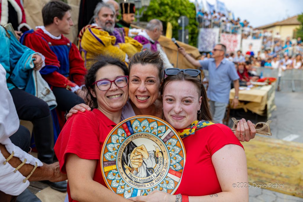 SARTEANO – I colori bianco e rosso svettano nuovamente su Piazza Bargagli a Sarteano, a vincere la Giostra del Saracino 2025 la Contrada di San Lorenzo con il giovanissimo giostratore Luca Betti, che si conferma ormai come fuoriclasse. A vincere il premio come migliori tamburini il duo della Contrada di San Martino e come migliori sbandieratori la Contrada della Santissima Trinità, il premio Corteggio va alla Contrada di San Lorenzo.