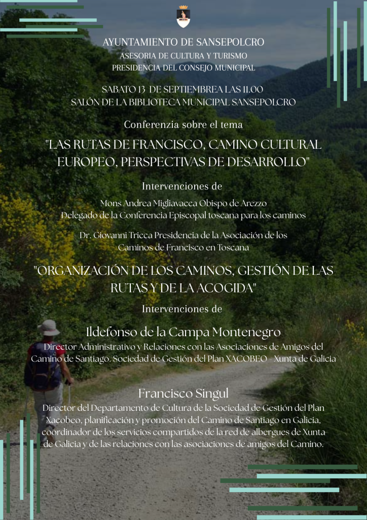 Il Comune di Sansepolcro, entrato un anno fa a far parte della Federazione Europea dei Cammini di Santiago, ha già promosso importanti iniziative: dall’apertura del nuovo tratto della Via di Francesco tra il centro cittadino e Gricignano, agli interventi di messa in sicurezza nella zona di Montecasale, fino all’organizzazione della prima mostra fotografica italiana dedicata ai Cammini culturali europei. Inoltre, il presidente del Consiglio Comunale Antonello Antonelli sta presenziando a tutti quelli che sono gli eventi internazionali più significativi legati a queste realtà culturali, mantenendo sempre alta l’attenzione sugli impegni e le progettualità del nostro territorio legate al cammino di Francesco.