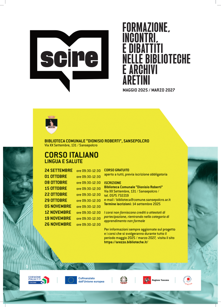 ovvero le difficoltà comunicative che spesso ostacolano l’accesso ai servizi, specialmente quelli sanitari. Il corso è parte integrante di un progetto più ampio, denominato “Scire”, che trasforma le biblioteche e gli archivi in veri e propri “hub” di conoscenza e integrazione. Finanziato dall’Unione Europea, dalla Repubblica Italiana e dalla Regione Toscana, “Scire” prevede un’ampia offerta di 132 corsi, incontri e dibattiti su diverse aree tematiche, tutti nati da un’attenta analisi dei bisogni espressi dalla popolazione aretina.