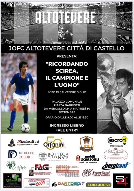 Lo Juventus Club Altotevere Città di Castello, è orgoglioso di presentare, la mostra fotografica su Gaetano Scirea “il campione di tutti, l’uomo nel quale possono ritrovarsi i tifosi di tutta Italia” con gli iconici scatti di Salvatore Giglio. Dal 24 al 30 settembre, sarà possibile accedere gratuitamente alla mostra recandosi presso l’ingresso del Palazzo Comunale di Città di Castello in Piazza Gabriotti.