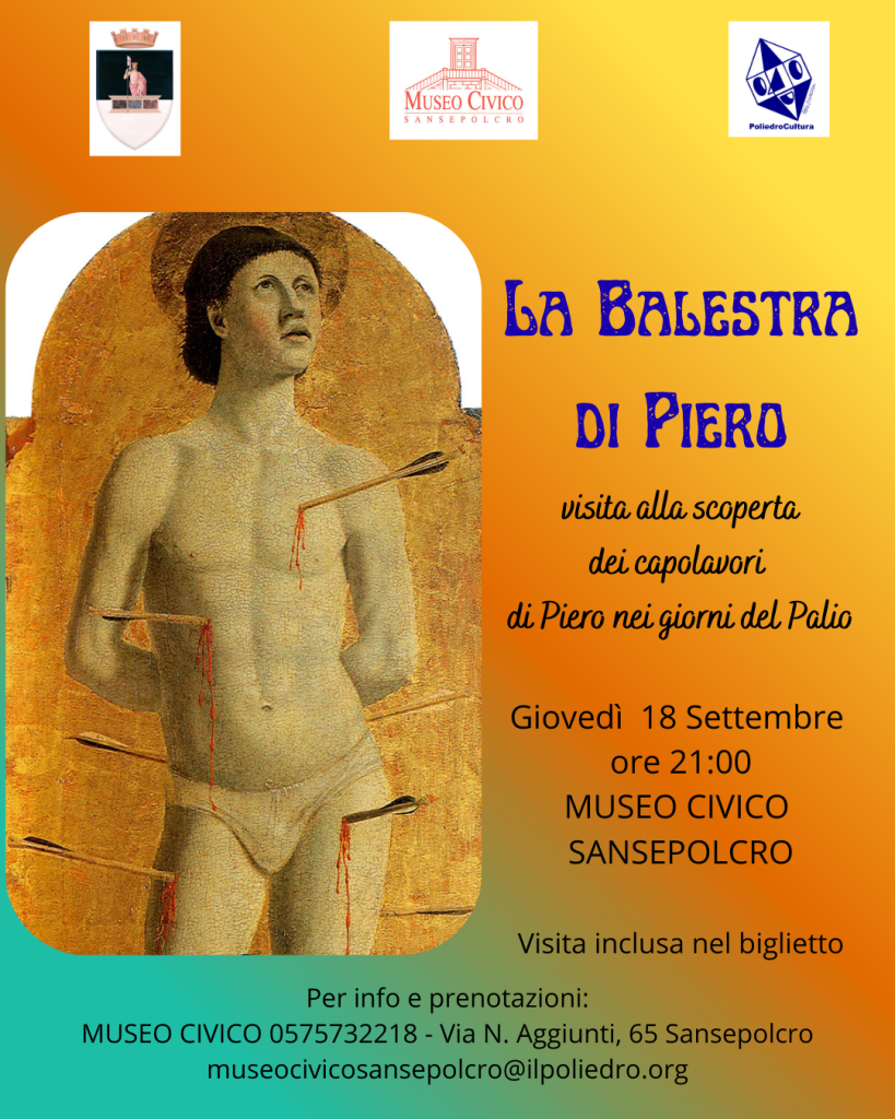 SANSEPOLCRO – Il legame tra arte, storia e tradizione torna protagonista al Museo Civico di Sansepolcro con l’appuntamento speciale “La Balestra di Piero”, in programma giovedì 18 settembre alle ore 21:00. Una visita guidata straordinaria che accompagnerà i partecipanti alla scoperta dei capolavori di Piero della Francesca, in un’atmosfera resa ancora più suggestiva dai giorni che seguono le celebrazioni del Palio della Balestra.