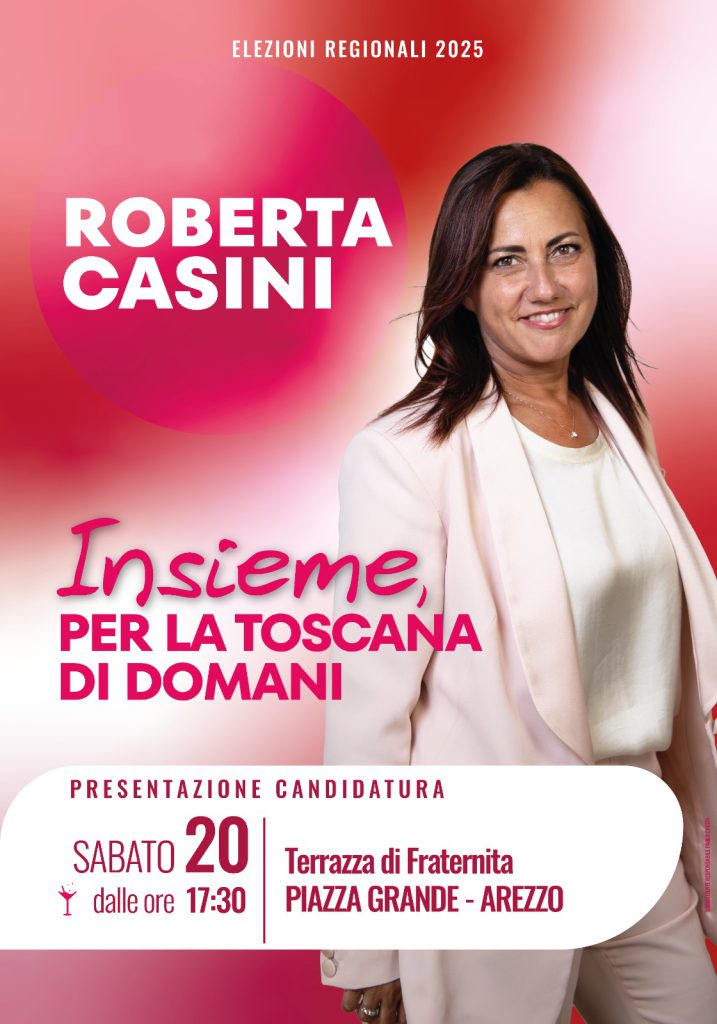 Casini invita infine cittadini, associazioni e realtà del territorio alla presentazione ufficiale della sua candidatura: «Vi aspetto sabato 20 settembre alle ore 17:30 alla Terrazza di Fraternita in Piazza Grande ad Arezzo. Sarà un momento di partecipazione e confronto, perché insieme possiamo costruire la Toscana di domani».