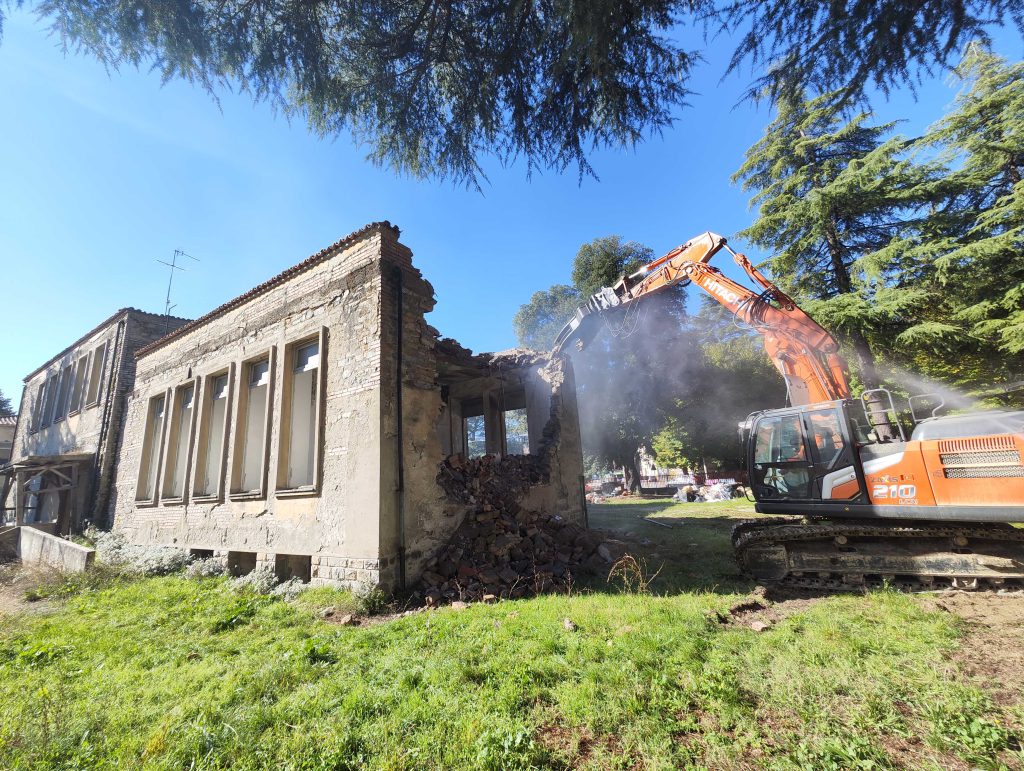 E’ partita stamattina la demolizione dell’ex scuola Garibaldi, primo passo dell’intervento da 350 mila euro complessivi con cui l’amministrazione comunale di Città di Castello risanerà e riqualificherà l’area urbana che si trova alle porte del centro storico. Attorno alle ore 10.30 la pinza dell’escavatore da demolizione dell’azienda Pelliccia Scavi SRl di Perugia ha dato il primo colpo all’edificio, che nell’arco di circa un mese verrà interamente abbattuto. Al suo posto verrà realizzato un parcheggio con 93 posti completamente gratuiti, un valore aggiunto a servizio di chi vive e lavora nel centro storico, delle attività economiche e delle sue manifestazioni del cuore della città, che consoliderà il primato per il rapporto tra residenti del capoluogo e spazi per la sosta liberi che Città di Castello detiene tra i comuni di dimensioni medio-grandi dell’Umbria. “Oggi diamo finalmente seguito all’impegno con i cittadini di rimuovere la situazione di degrado dovuta a un immobile ormai fatiscente e di rifunzionalizzare a beneficio della collettività l’intera area urbana”, ha sottolineato stamattina il sindaco Luca Secondi, che ha seguito l’avvio delle operazioni di demolizione insieme al vice sindaco Giuseppe Stefano Bernicchi e all’assessore ai Lavori Pubblici Riccardo Carletti, alla presenza del responsabile unico del procedimento dell’ente Giuliano Ciocchetti e del progettista e direttore dei lavori Luca Catufi. “Il nuovo parcheggio, che abbiamo scelto di lasciare al libero accesso da parte di tutti gli automobilisti, sorgerà in un luogo strategico per l’accessibilità del centro storico. Darà, pertanto, una risposta importante alle esigenze della cittadinanza, ma anche di chi visita Città di Castello per turismo e per partecipare alle manifestazioni che ospita”, ha sottolineato il sindaco. “L’area di sosta – ha puntualizzato Secondi – intende rappresentare una soluzione temporanea, in attesa che la Fondazione Palazzo Albizzini presenti una proposta concreta, con un nuovo cronoprogramma, per la realizzazione di piazza Burri”. L’investimento che l’amministrazione comunale sosterrà con le risorse del proprio bilancio coprirà i costi della demolizione dell’immobile e della realizzazione dell’area di parcheggio, che sarà ottenuta riutilizzando parte dei materiali ricavati dall’abbattimento dell’edificio. Ai 40 posti auto esistenti, se ne aggiungeranno 53 lungo l’attuale perimetro della palazzina in via di smantellamento, di cui tre riservati a persone con disabilità. Il parcheggio avrà due ingressi, in viale Vittorio Veneto e in via Antonio Labriola.