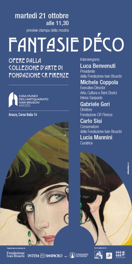 MARTEDI’ 21 OTTOBRE ORE 11.30 Casa Museo dell’Antiquariato Ivan Bruschi Corso Italia, 14 – Arezzo Interverranno: Luca Benvenuti, Presidente della Fondazione Ivan Bruschi Michele Coppola, Executive Director Arte, Cultura e Beni Storici Intesa Sanpaolo Gabriele Gori, Direttore Fondazione CR Firenze Carlo Sisi, Conservatore della Fondazione Ivan Bruschi Lucia Mannini, Curatrice della mostra A seguire visita alla mostra con la Curatrice.