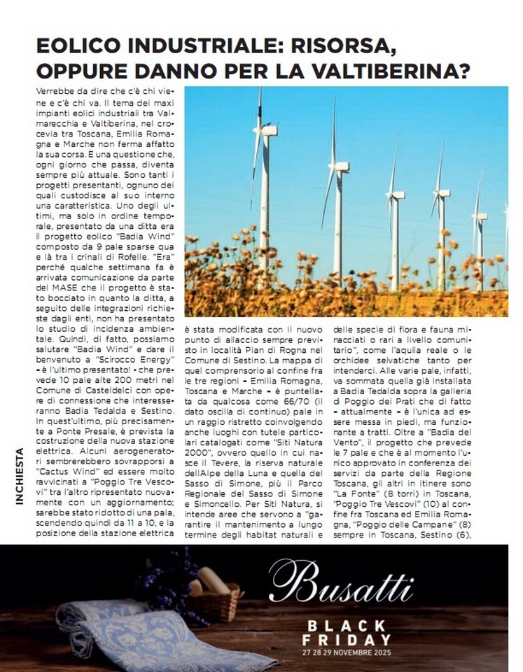 22 Novembre 2025 di informazionelibera Novembre 2026. Eolico Industriale: risorsa, oppure danno per la Valtiberina Post Views: 66