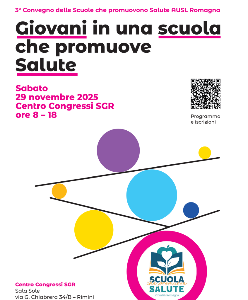 La terza edizione del Convegno annuale, dal titolo ‘Giovani in una scuola che promuove Salute’, si svolgerà a Rimini sabato 29 novembre, dalle ore 8.30 alle 18, alla sala Sole del Centro Congressi SGR (via Chiabrera 34/B). Come già per le prime due edizioni, il programma è stato definito da un comitato scientifico interno al Dipartimento di Sanità Pubblica, trasversale a tutti gli ambiti territoriali, grazie al coinvolgimento degli operatori che seguono il processo Scuole che Promuovono Salute nei diversi territori di competenza dell’Azienda Usl della Romagna. L’appuntamento inaugurale, svoltosi nel 2023 a Ravenna, era stato dedicato alla presentazione della Rete, poi lo scorso anno, nell’evento svoltosi fra Cesena e Bertinoro, si è approfondito il tema della partecipazione degli enti locali e del terzo settore, mentre in questo caso la giornata di approfondimenti e lavori di gruppo sarà incentrata sulla partecipazione attiva degli alunni/studenti di ogni ordine e grado al percorso di promozione della salute, sia all’interno della scuola sia nella comunità.