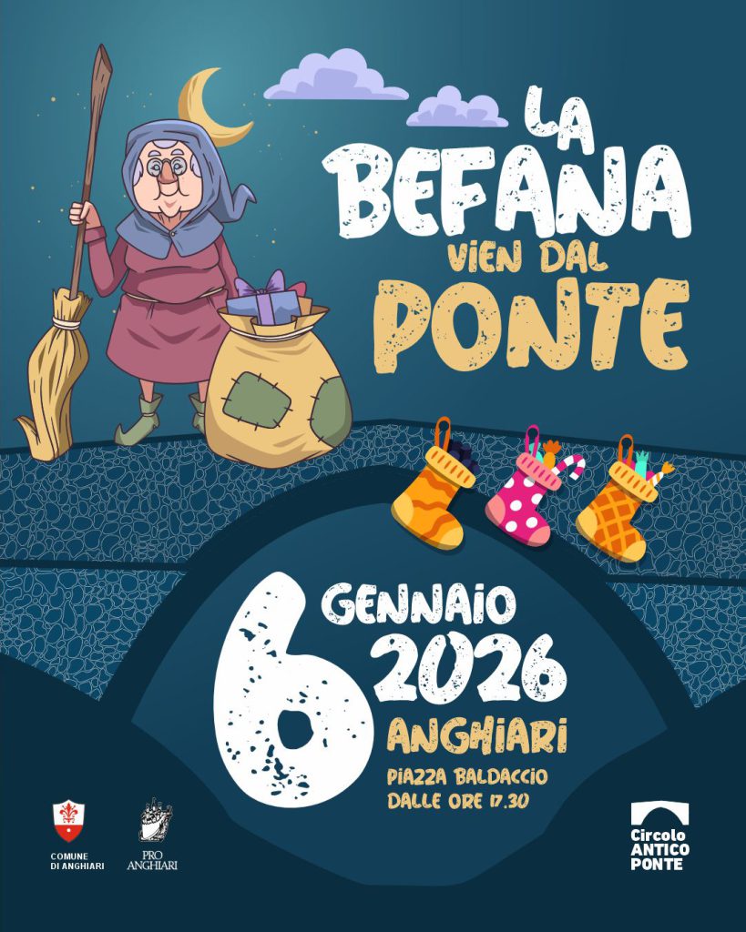 Il gran finale si terrà martedì 6 gennaio, con la tradizionale “Befana vien dal Ponte”, una festa che saprà incantare grandi e piccini. Alle 17:30, le befane arriveranno in Piazza Baldaccio a bordo delle auto d’epoca del “Club auto d’epoca del circolo Antico Ponte”, pronte a distribuire dolci, carbone e piccoli regali ai bambini presenti. Evento organizzato dal Circolo Antico Ponte di Ponte alla Piera in collaborazione con il Comune di Anghiari e l’Associazione Pro-Anghiari.