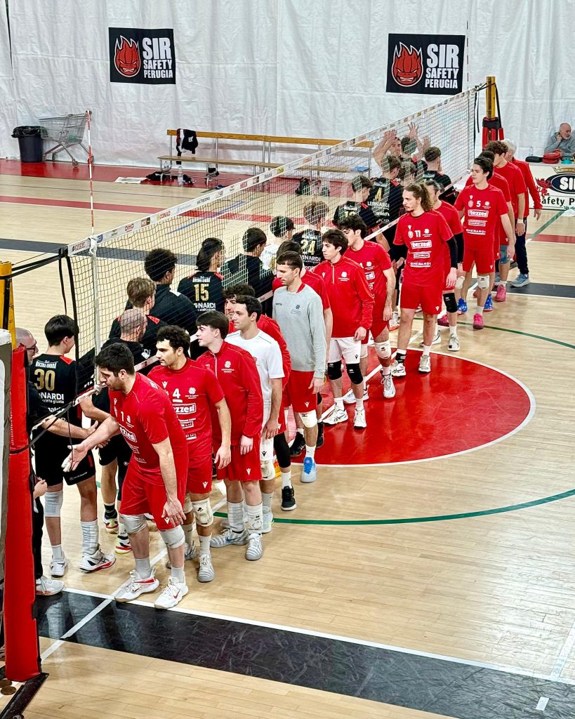 Biancorossi scesi in campo ancora senza Stoppelli, con Cioffi, fuori per alcuni mesi per impegni universitari al Cern di Ginevra e Valenti e Landini a mezzo servizio per problemi fisici, tanto da far arrivare ad Assisi , dopo la gara di serie D, poco prima dell’inizio della gara il giovane centrale Arcaleni Daniele che nella prima gara dell’anno schierano Casella -Panizzi Lorenzo in diagonale , Cesari-Conti schiacciatori, Landini- Merlino centrali. Lensi libero. Partenza lenta dei biancorossi che commettono una serie di errori, 6 nel 1 set sui 14 dell’intera gara, gara punto a punto 12/12 con casella efficace al servizio. Al break di Conti e compagni 12/15 rispondono i ragazzi di capitan Cassieri che con un parziale 5/0 ribaltano il punteggio 17/15. Time out Sideri che richiama i suoi che tornano in campo e chiudono il set 20/25. Secondo parziale Città di Castello scappa via 2/12 , in campo Marconi, Arcaleni, Rumori e Panizzi Giovanni, per Cesari, Landini, Casella e chiude il set 13/25. Terzo parziale con Cesari Leonardo subentrato a Lensi, sempre con i biancorossi a dettare legge . Coach Arcangeli mischia le carte , senza successo, e sul 15/25 si chiude una gara. Lunedì si torna in palestra per preparare la difficile gara con Strike Team Monteluce di sabato 17 Gennaio 2026 alle ore 21:15 al pala Andrea Joan di Città di Castello. Sarà l’ultima gara del mese di gennaio prima di due settimane di sosta del campionato.