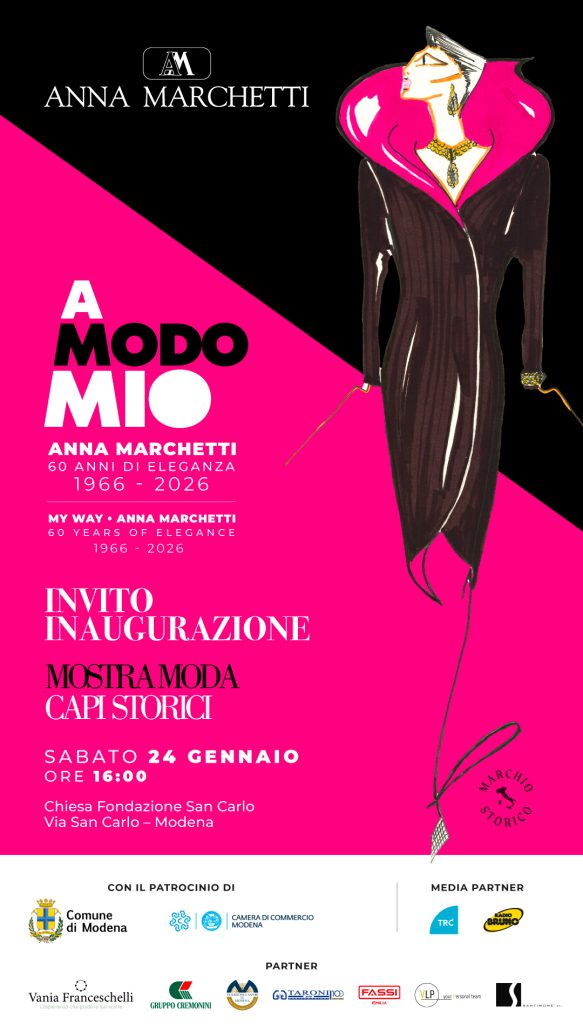 Fondata nel 1966, la Maison ha saputo interpretare i cambiamenti della società e del gusto con sensibilità contemporanea e radici profondamente legate al territorio. L’anniversario rappresenta oggi un’occasione privilegiata per ripercorrere una storia unica, ma anche per restituire alla città un progetto culturale di grande valore, riconosciuto dal Comune di Modena, dalla Camera di Commercio e dagli operatori del settore come uno degli appuntamenti più rilevanti del 2026. Il marchio “Anna Marchetti” è inoltre inserito nel registro dei Marchi Storici d’Interesse Nazionale, un riconoscimento ufficiale del Ministero che attesta l’impegno e la continuità di un’eccellenza italiana.