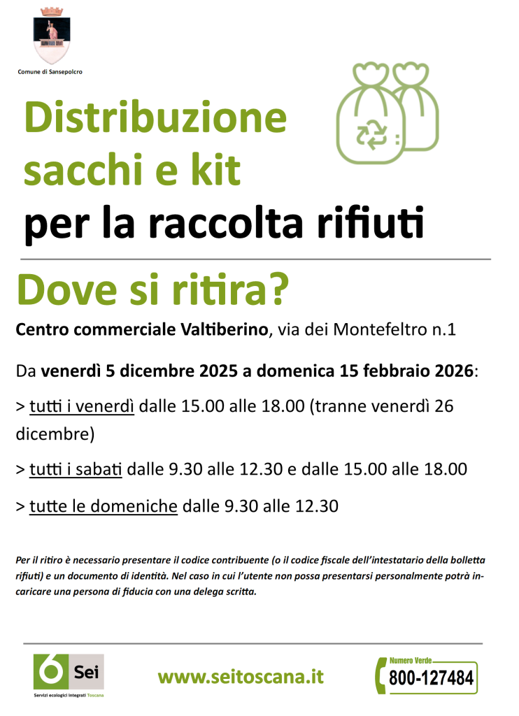 Dal 2 febbraio parte il Porta a Porta nella Zona Collina. Il Comune di Sansepolcro informa che sta per entrare nella sua fase finale il progetto di riorganizzazione complessiva del servizio di raccolta dei rifiuti urbani. Dopo l’avvio del nuovo modello stradale (dicembre 2024) e l’introduzione del Porta a Porta nel Centro Storico e nella fascia intorno alle mura (giugno 2025), la riorganizzazione proseguirà ora con l’attivazione del servizio domiciliare nella Zona Collina, interessando un’ampia area residenziale della città.