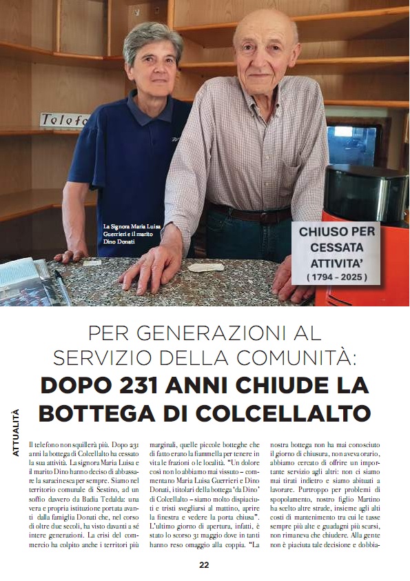 Colcellalto di Sestino chiude la bottega Donati